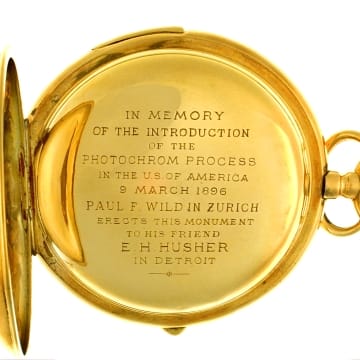 William A. Livingstone (an engineer and son of wealthy Detroit shipping magnate, newspaper publisher, and financier, William Livingstone, Jr.), joined forces with a local photographer, Edwin H. Husher, to form the company. Husher and Livingstone obtained from the Photoglob Company of Zurich, Switzerland, the North American rights to an astounding new photolithographic process called Photochrom, to produce, in quantity, color prints that retained their photographic verisimilitude while capturing the vibrant colors of the popular chromolithographs of the late nineteenth century. Husher even persuaded an expert in the process, Albert V. Schuler, and a small crew of draftsmen from Switzerland to work for the new company. Since color photography as we know it did not then exist, holding exclusive rights to this Swiss method gave the company a significant advantage over its competitors. Besides producing these distinctive Photochrom color prints, the company also published color postcards, sepia-toned photographic prints, and lantern slides, all based on a huge inventory of photographic negatives.