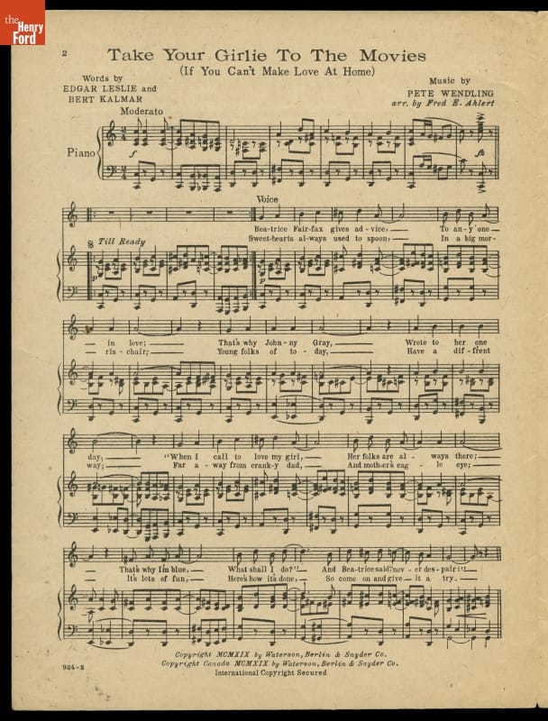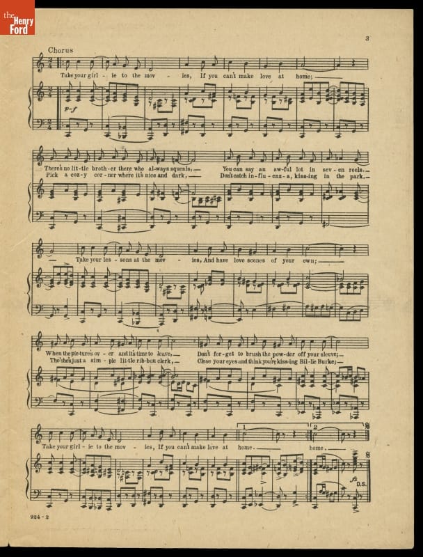 Music Sheet, "Take Your Girlie to the Movies (If You Can't Make Love at Home)," 1919