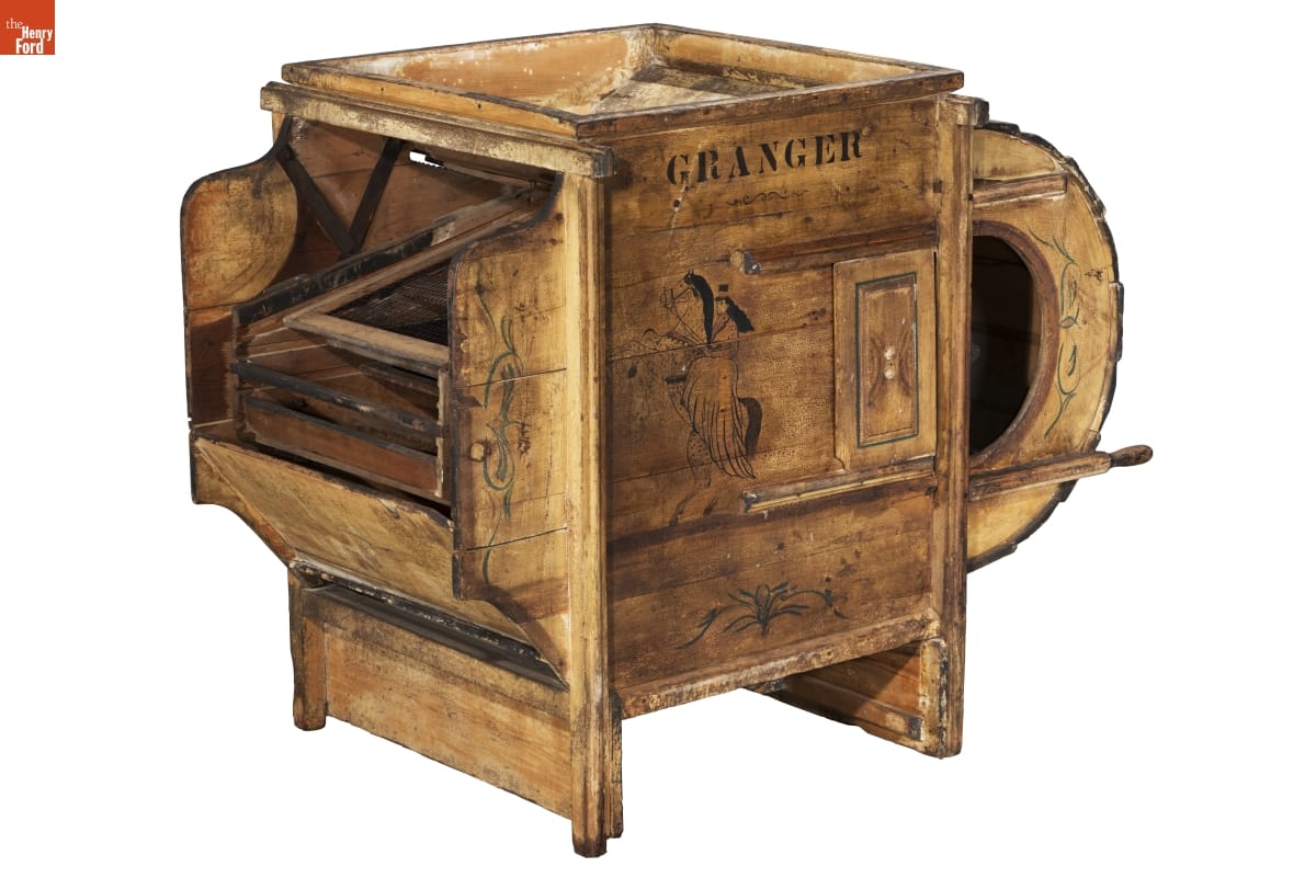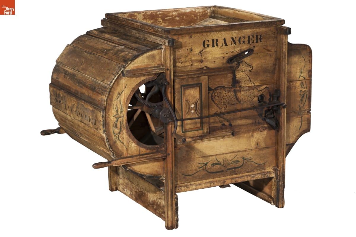 Farmers had no control over markets, but fanning mills helped them secure a higher price per bushel of clean grain. A special-interest organization, the Grange, helped farmers leverage better prices through cooperative marketing and purchasing, and by lobbying congressmen to regulate markets. J. A. Bradmon of Lansing, Michigan, made this mill distinctive by branding it "Granger" and by colorfully decorating it.