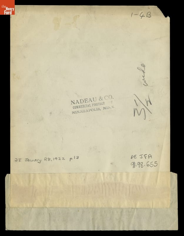 Stamped on back: NADEAU & CO. / COMMERCIAL PHOTOGR / MINNEAPOLIS, MINN.