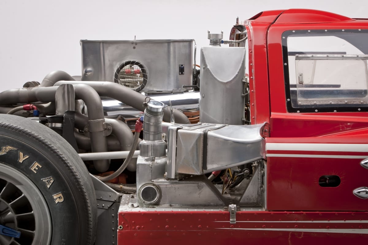 This car was built to win the 24 Hours of Le Mans. Driven by Dan Gurney and A.J. Foyt, it accomplished that goal in 1967, beating the second-place Ferrari by 32 miles at a record-breaking average speed of 135.48 miles per hour. The Mark IV combined a sophisticated chassis with a big engine based on Ford's V-8 for stock car racing.
