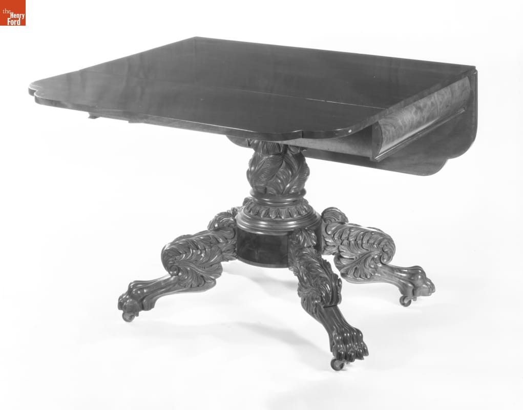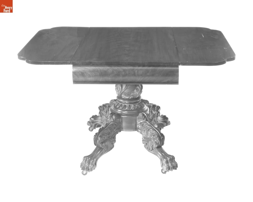 This table belonged to Mark Twain (1835-1910), American author and humorist whose real name was Samuel L. Clemens. The author wrote at this table during the later years of his life. Twain's daughter Clara gave it to Henry Ford, along with a portrait of her father.