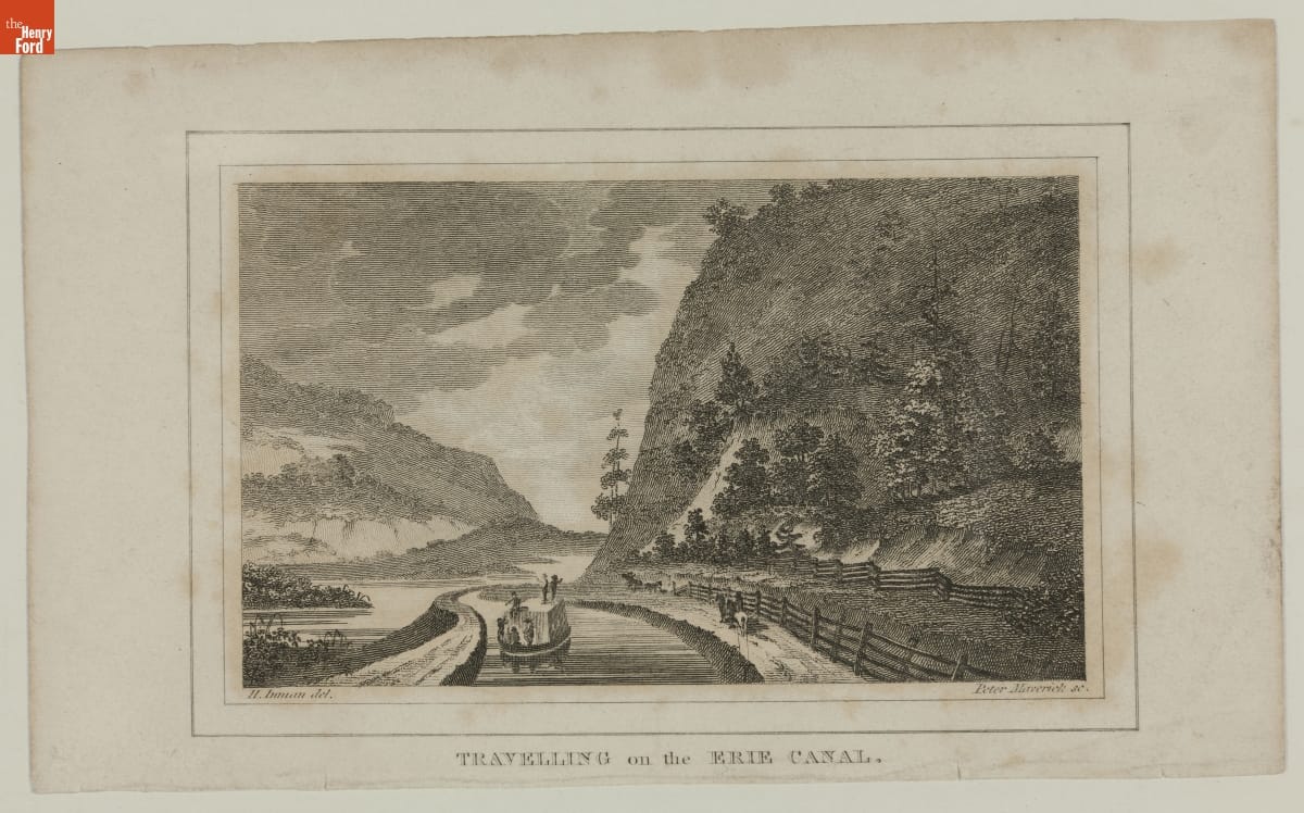 Engraving, "Travelling on the Erie Canal," 1826