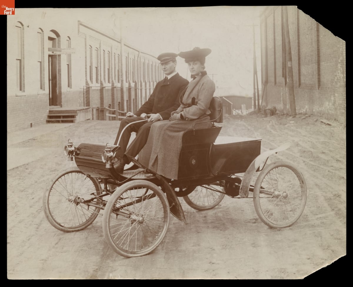 Man and Woman in Curved-Dash Oldsmobile, 1901