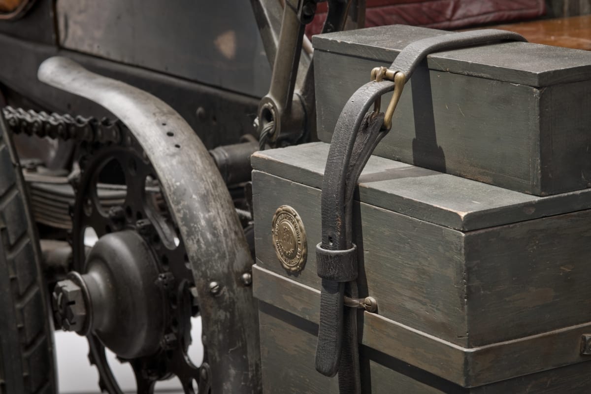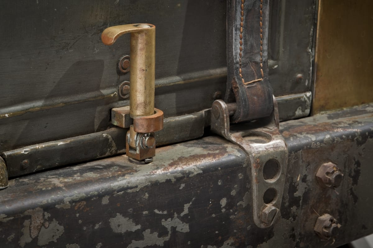 Painted on front of radiatior and on sides of hood: 16 Lubricator on front wheel axle: LUNKENHEIMER CO. CINCINNATI, O - MARINE NO.1 Plate on front dash: LICENSED / UNDER / SELDEN / - PATENT / NO. 549,160 / PATENTED NOVEMBER 5, 1895 / 203781 Plate on wooden box on right: REGISTERED / MOTOR VEHICLE/ NO. 10576 / NEW YORK Other inscriptions, location not noted: 120 HP LOCOMOBILE / BUILT BRIDGEPORT, CONN. 1906 / DESIGNER, A.L. RIKER / 1906 WINNER VANDERBILT CUP TRIALS / JOE TRACY- DRIVER/AL POOLE- MECH / 1906 RECORD LAP VANDERBILT CUP RACE / JOE TRACY- DRIVER / AL POOLE- MECH / 1908 WINNER VANDERBILT CUP RACE / GEORGE ROBERTSON- DRIVER / GLEN ETHRIDGE- MECH BOSCH DUAL COIL / RUN START / NO.61161 6 VOLTS / PATENTS PENDING PST'D NOV. 3, 1895 APRIL 14, 1903 OCT. 14, 1902 APRIL 21, 1903 PAT'D PENDING