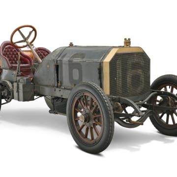 Locomobile Old 16 Race Car on Racetrack with Driver and Mechanic, 1906-1908