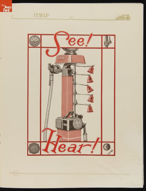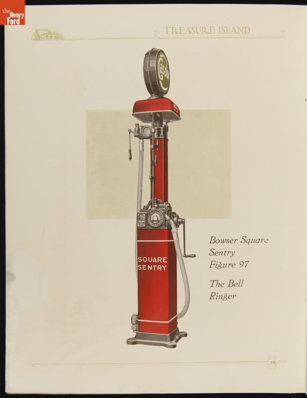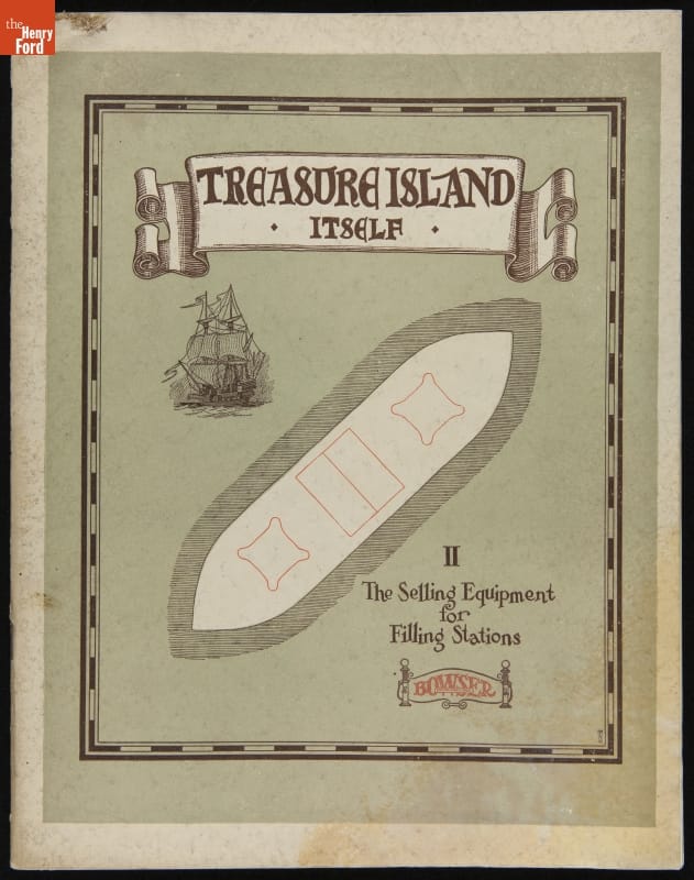 This "Treasure Island" isn't from Robert Louis Stevenson's classic pirate tale. By 1920, gasoline retailers determined that placing gas pumps on an "island" in front of the station, where drivers could approach from either side, was more efficient than mounting them on the station's wall. This equipment trade catalog features everything from air pumps to underground storage tanks.