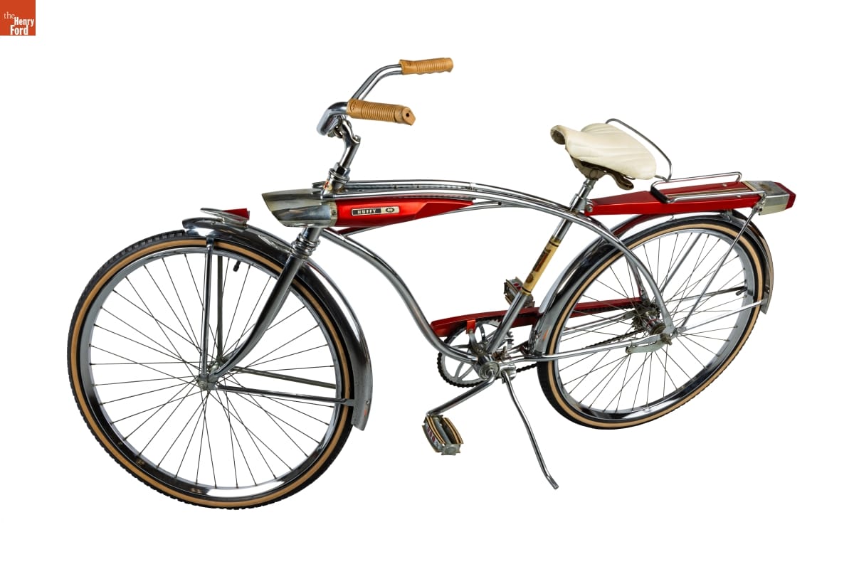 Huffman Manufacturing Company had its origins in the bicycle boom of the 1890s. The company thrived in the mid-20th century by making popularly priced children's bikes. Huffman built its five millionth bicycle in 1964. The special bike's sleek headlight, comfortable saddle, and rear rack provided everything a kid could want in pedal-powered transportation.