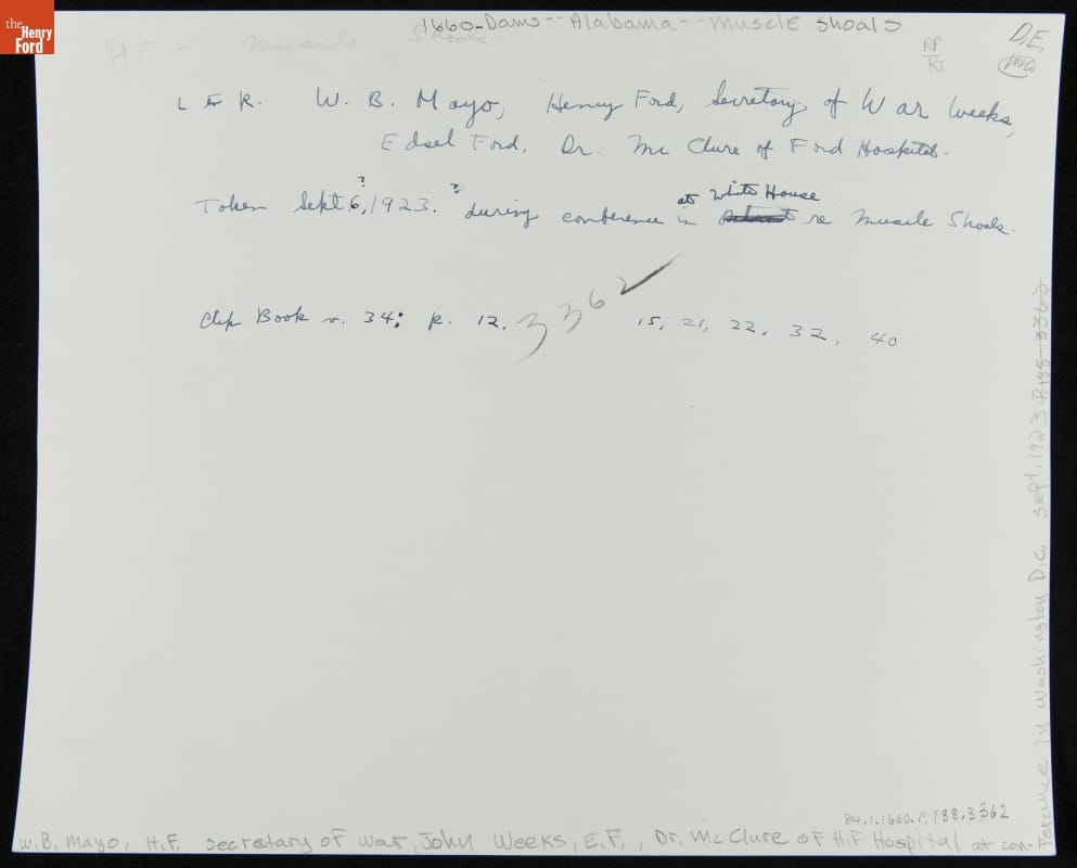 Henry Ford and Party in Washington to Discuss the Muscle Shoals Project with Secretary John Weeks, 1923