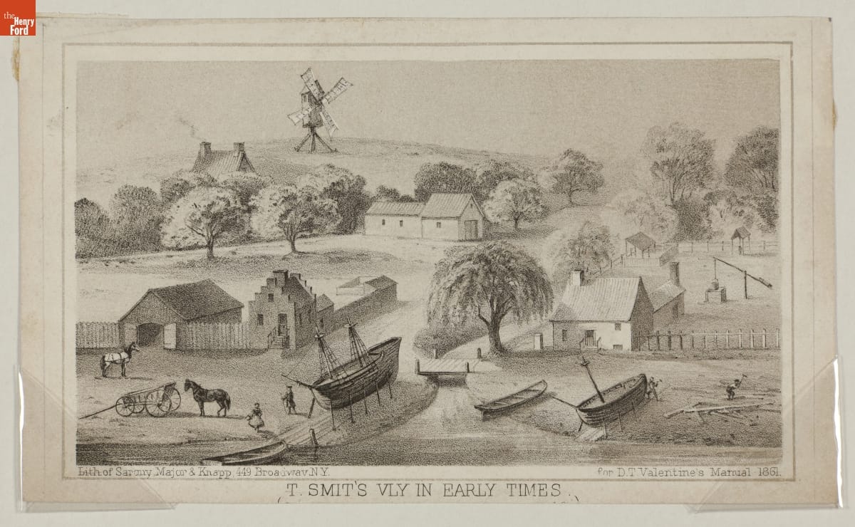 "T. Smits Vly in Early Times" (New Amsterdam, later New York City), Lithograph from 1861