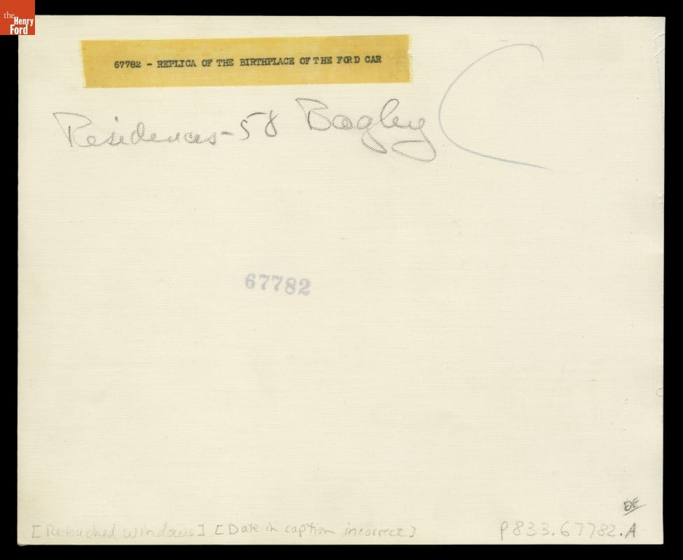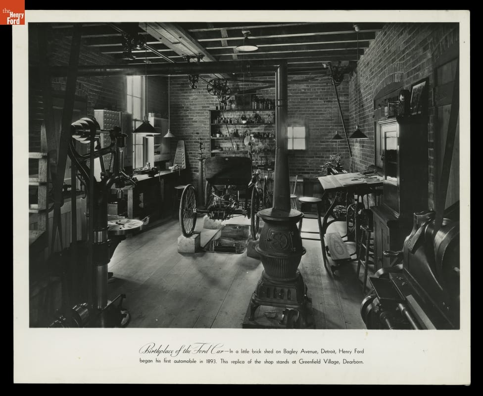 Henry Ford constructed the Bagley Avenue Workshop in Greenfield Village in 1933. It replicated the shed behind the house where he and Clara lived at 58 Bagley in Detroit, and where Henry built his Quadricycle in 1896. The original shed was gone by the 1930s, but bricks from the Bagley Avenue house reportedly were used in the replica.