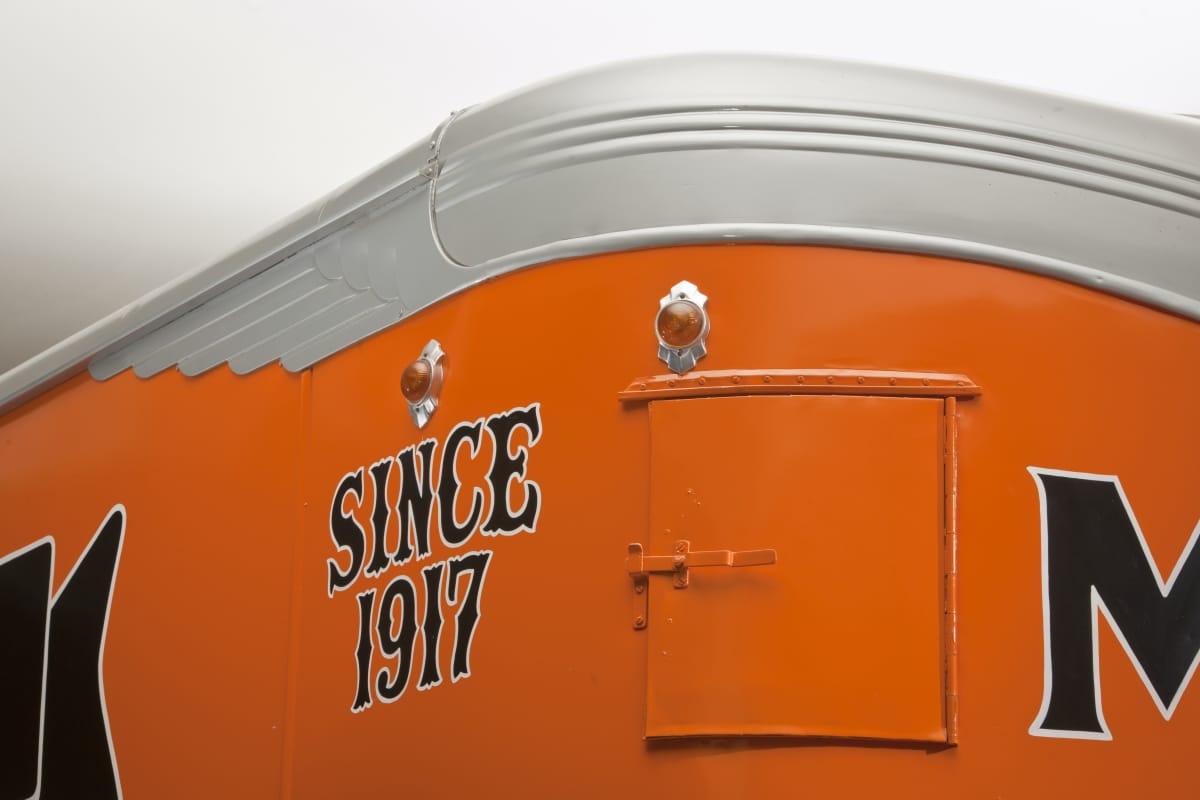 This 1946 Fruehauf Model FF Aerovan was a standard dry freight trailer during the 1940s. A freight trailer was a simple idea. Built with no front axle, the trailer's front is supported by a vehicle that pulls it, now called a tractor. This trailer has been painted to match the tractor used by the Coles Express, Inc., of Maine. …