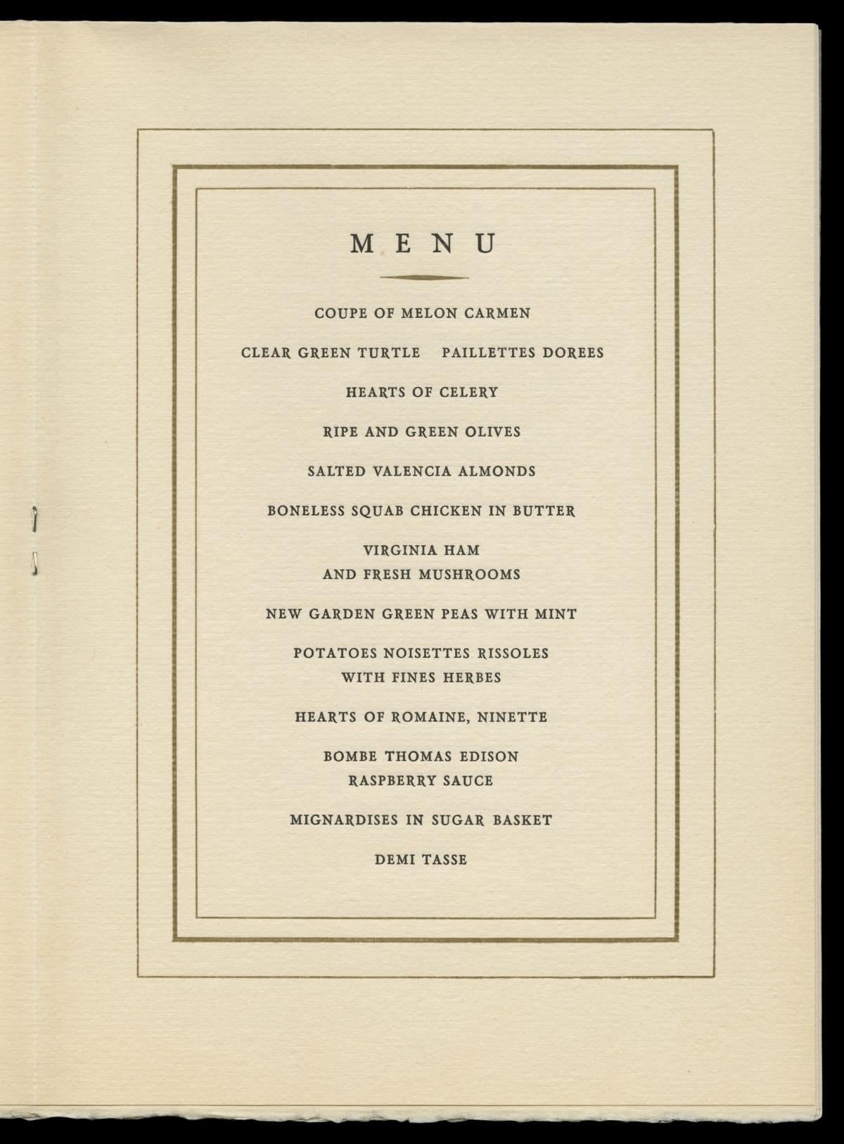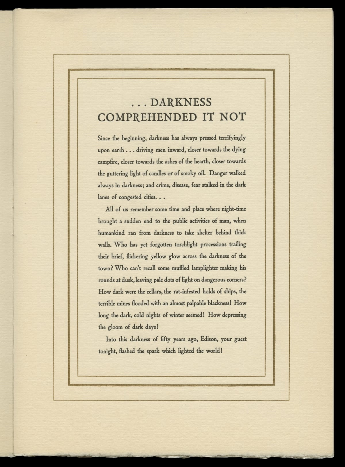 Program for Dinner in Honor of Thomas Alva Edison during Light's Golden Jubilee, October 21, 1929