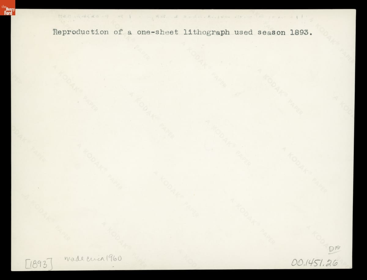 Original poster lithographer was Donaldson Lithograph Co., Cincinnati, Ohio. The photographer is unidentified.