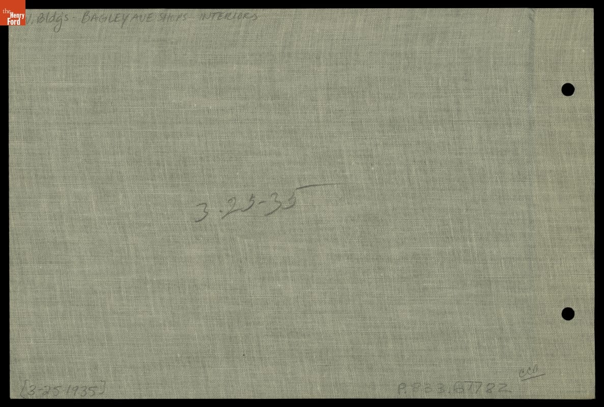 Interior of Bagley Avenue Workshop in Greenfield Village, 1935