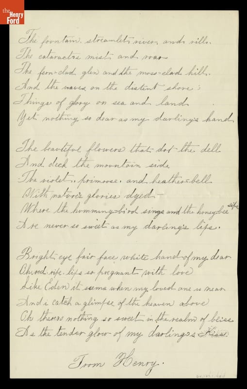 Poem, Written by Henry Ford for Clara Bryant, 1886-1888