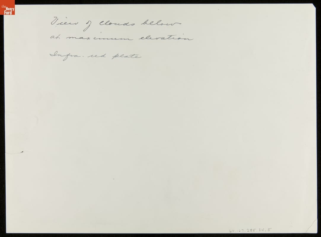 Handwritten on back: View of clouds below at maximum elevation Infra red plate