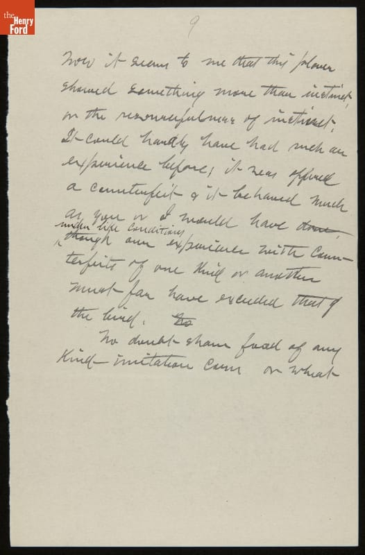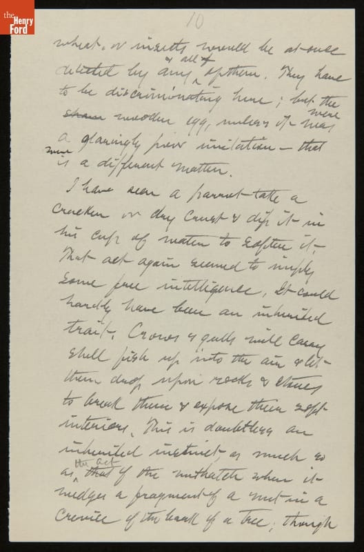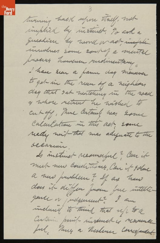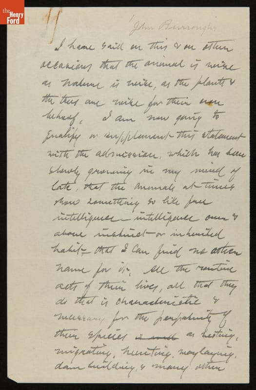 Essay by John Burroughs, "On Instinct," 1906-1907