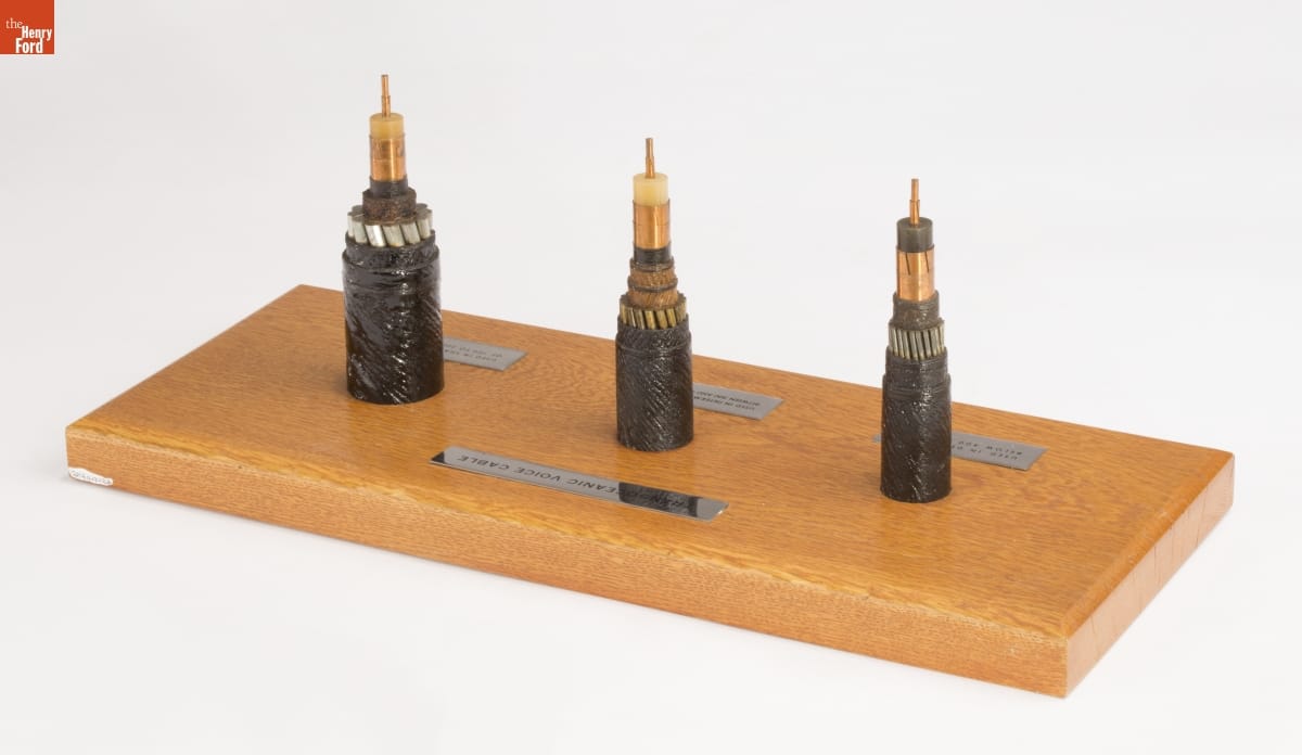 The opening of the TAT-1 (Transatlantic No. 1) cable in 1956 made it possible to place long-distance telephone calls across the Atlantic Ocean. Until this cable was installed, voice transmission over long distances occurred through an unreliable and expensive radio relay system. The TAT-1 responded to an increased demand for instant communication, establishing the first accessible international telephone service.