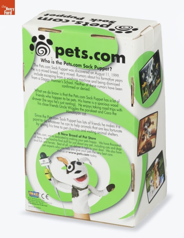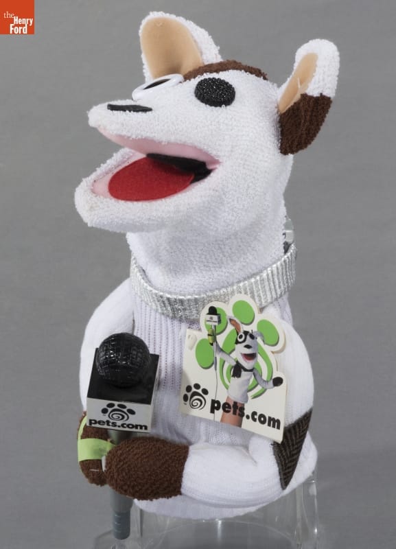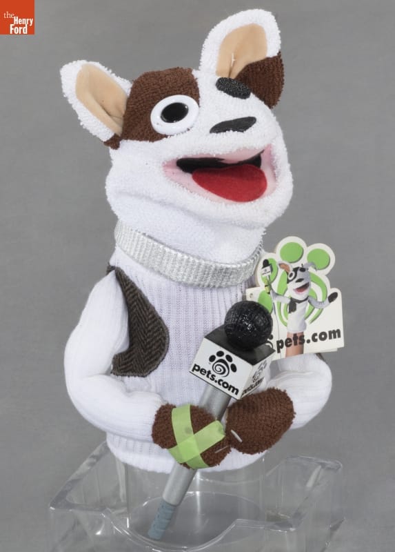 Pets.com was a web-based pet supply retailer and one of the most public victims of the "dot-com bubble burst" among Internet companies in the 1999-2001 period. Their popular mascot--a sock puppet dog--was created by TBWA Worldwide and voiced by comedian Michael Ian Black. It made appearances on talk shows, commercials, and as a float in Macy's Thanksgiving Parade.