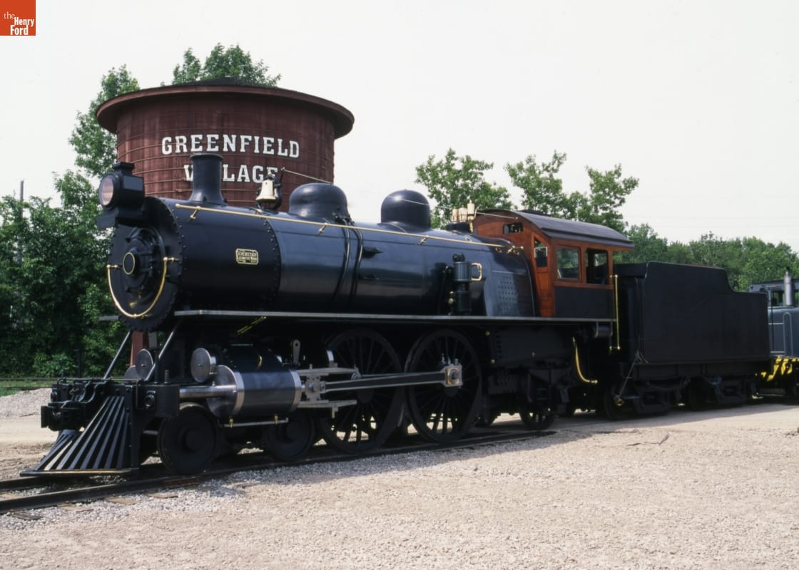 The American Locomotive Company of Schenectady, New York, built this locomotive in 1902. It is a 4-4-2 Atlantic type, with four leading wheels, four driving wheels, and two trailing wheels. The Atlantic was designed to pull light wooden passenger cars at high speeds. This locomotive operated on the Michigan Central Railroad's Detroit-Chicago line until heavier steel cars made it obsolete.