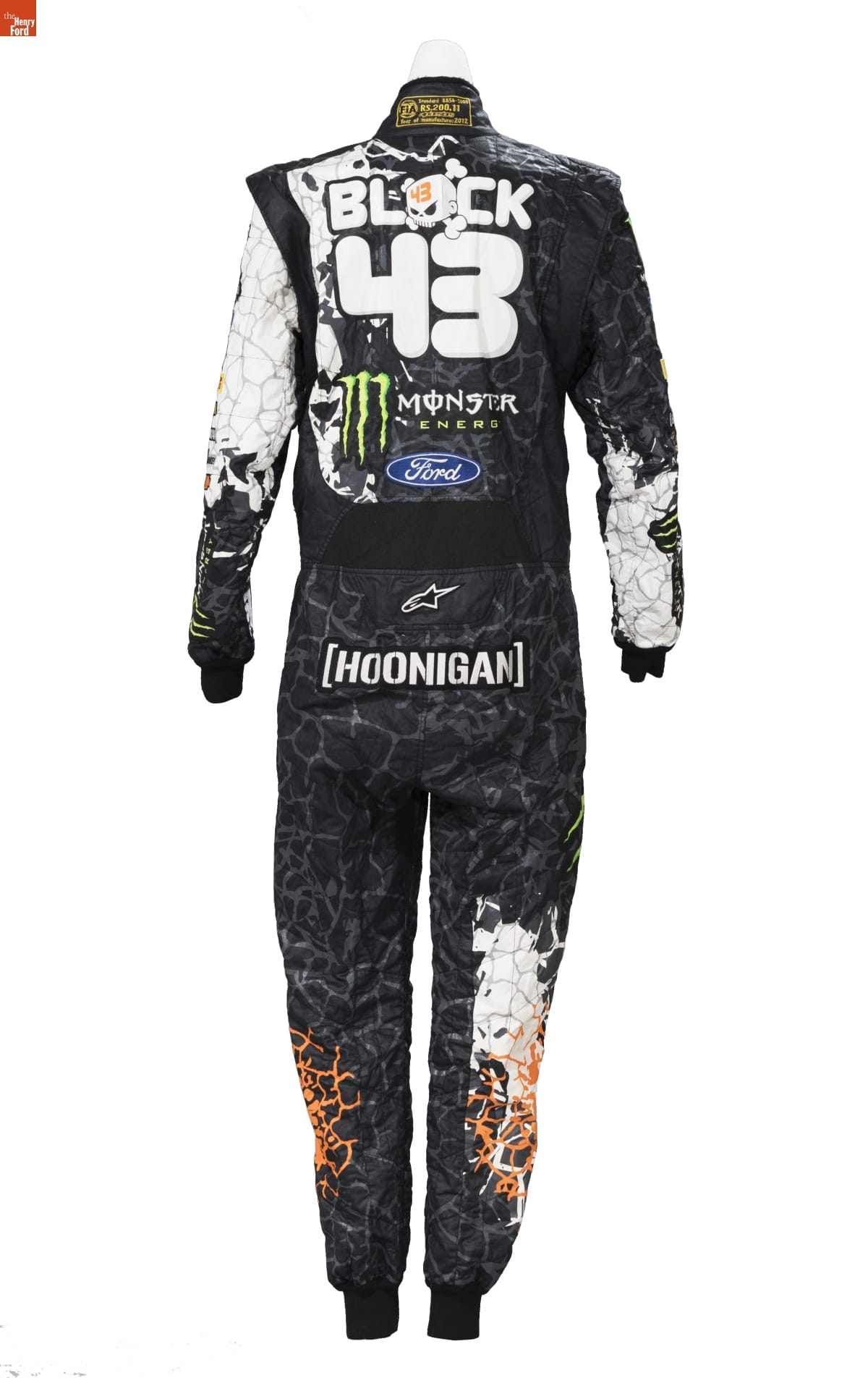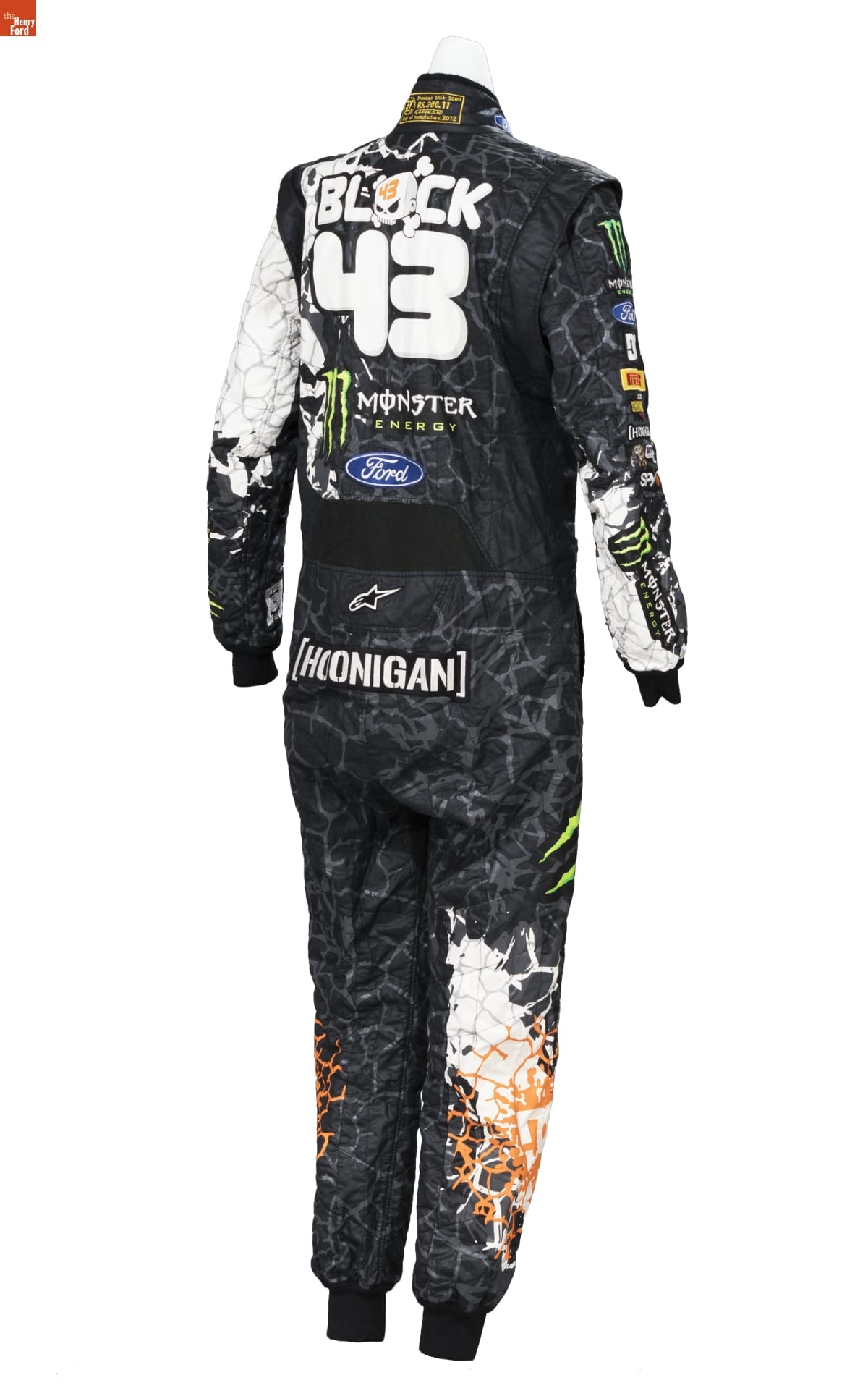 Rally driver Ken Block redefined motorsport with his wildly popular Gymkhana film series. Each video featured Block performing elaborate stunts in exciting locations, and together they racked up hundreds of millions of views online. Block wore this racing suit in 2012's Gymkhana Five: Ultimate Urban Playground; San Francisco, a tire-shredding tour through the City by the Bay.