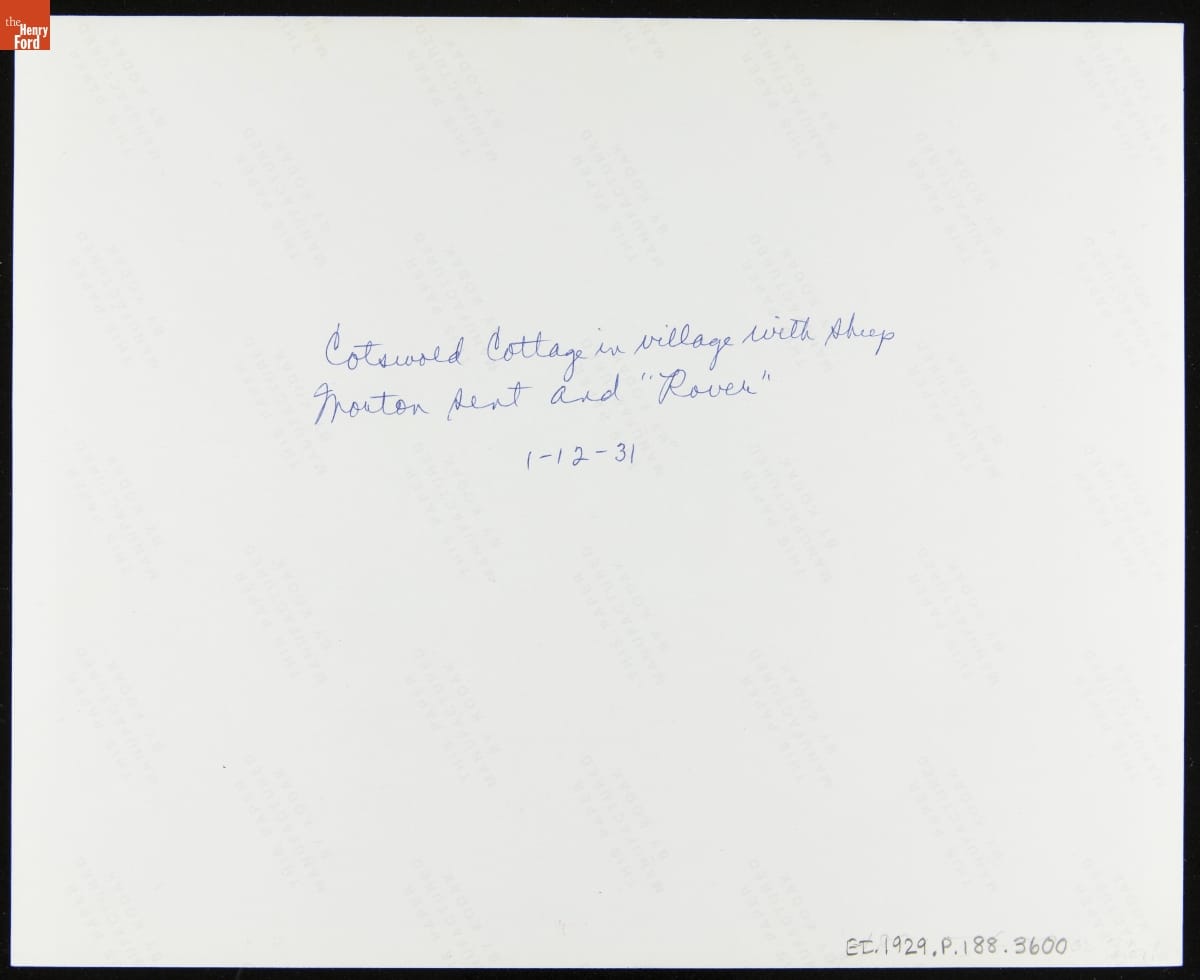 Henry Ford purchased a black Newfoundland puppy in 1930. The dog, named Rover, would help guard sheep at Greenfield Village's Cotswold Cottage. (Ford envisioned the interpretation of the cottage as the home of an English sheepherder.) The dog became a fixture in the Village. Rover was beloved by many: Gus Munchow--his trainer, Ford, and the schoolchildren of the Edison Institute.