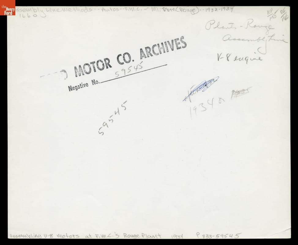 Assembling Ford V-8 Engines at Ford Rouge Plant, Dearborn, Michigan, 1934