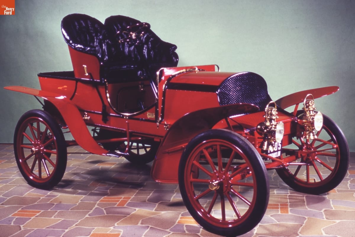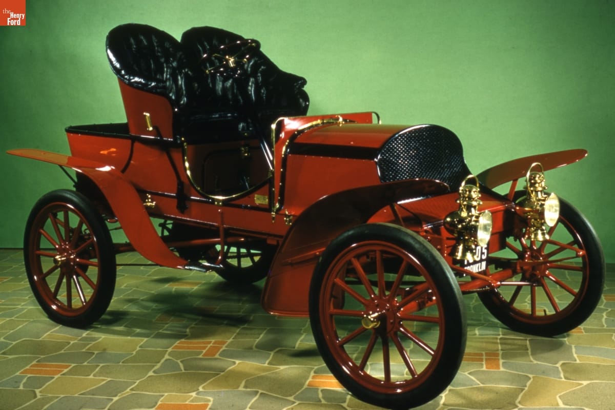 The Franklin Automobile Company of Syracuse, New York, manufactured luxury cars from 1902 until 1934. Franklins were inventive machines. This 1905 runabout is distinguished by its air-cooled engine, which eliminated the need for a radiator. The engine is mounted transversely under the hood so that each of the four cylinders is cooled equally as the car travels.