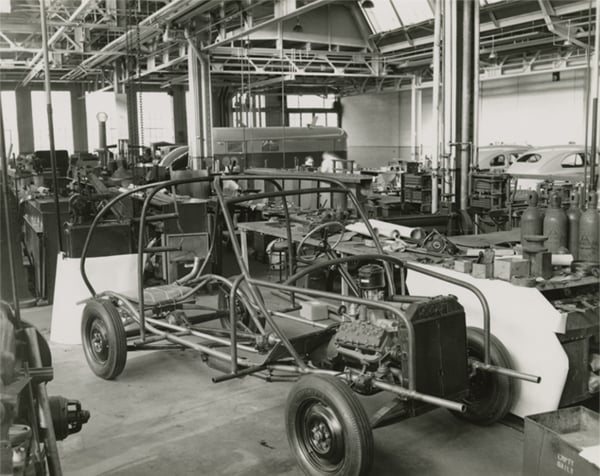 In the early 1940s, Henry Ford experimented with making plastic parts for automobiles. These experiments resulted in what was described as a "plastic car made from soybeans." Although this automobile never made it into the museum's collections, it remains a good example of innovative design.
