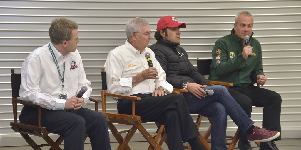 We kicked off race weekend on Thursday with a great panel discussion open to the media. I was honored to sit with fellow panelists Clive Chapman, proprietor of Great Britain’s Classic Team Lotus and son of Colin Chapman – designer of our car; Leonard Wood, co-owner of Wood Brothers Racing – the oldest active team in NASCAR – and a member of Jim Clark’s 1965 pit crew; and Dario Franchitti, a three-time Indy 500 winner and four-time IndyCar Series Champion – and a certified Clark-ophile.