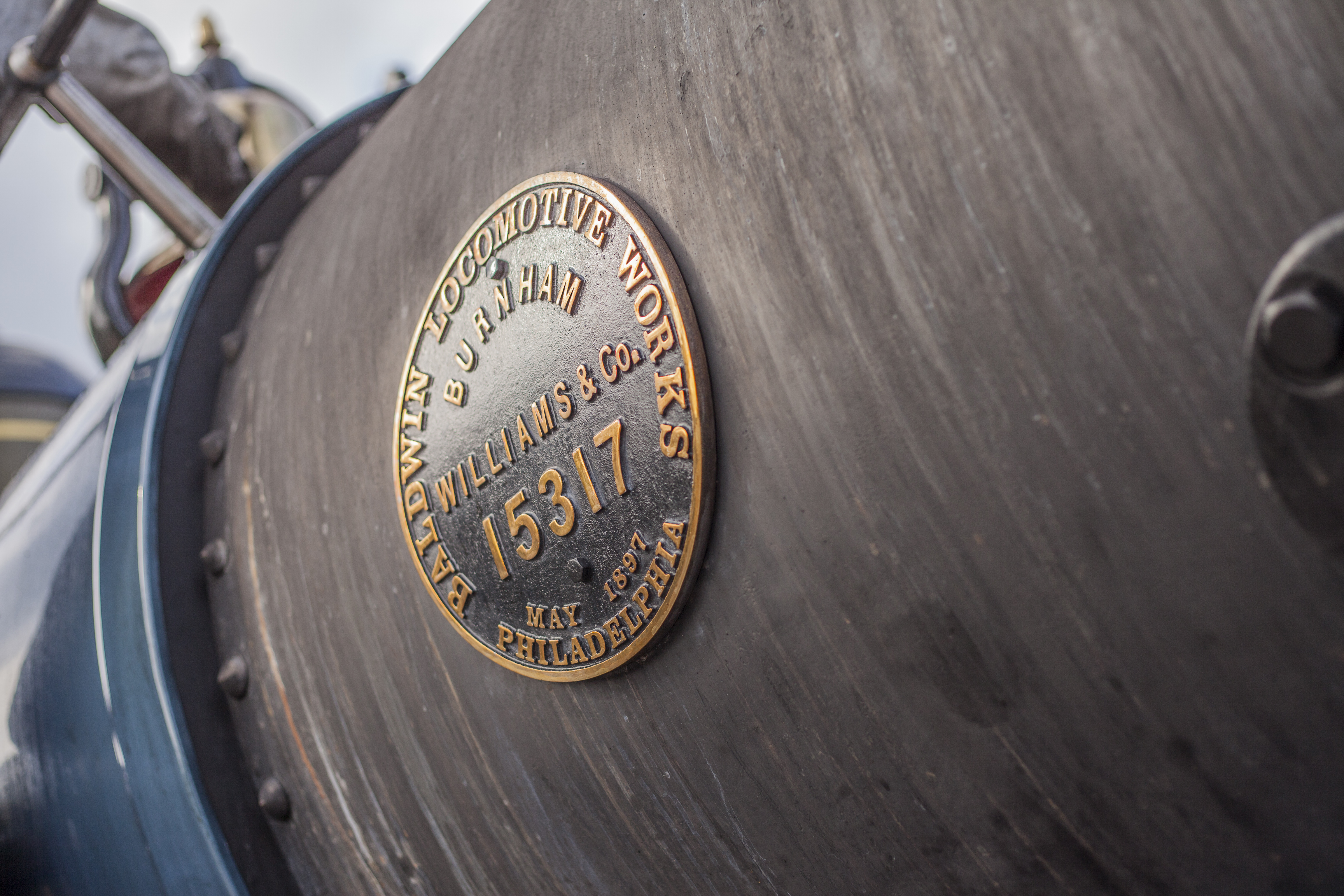 Although the Baldwin “as built” information identified a specific color name there were no color chips to tell exactly what that name actually looked like. The color established was the result of significant research and the color mix selected came from Chris Dewitt of the Nevada State Railroad Museum. A 1913 Baldwin in their collection had a small section that provided the only known “color chip” of the original paint. This sample was analyzed and they provided a chip from that analysis for our restoration. For the railroad purists it is important to note that each Baldwin painter mixed his own paint; it is unlikely that anyone could point to a replicated color and say “this was an exact match.”