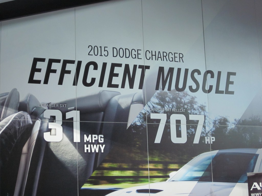 Dodge continues to position itself as Fiat Chrysler’s performance brand. NAIAS visitors can take a 2015 Charger for a simulated spin in the company’s interactive track activity. Drivers sit behind the wheel of a real car, but the “track” exists only on the large-screen TV mounted in front of the car. Mechanisms under the Charger cause it to shake and shudder in synch with the screen, helping to sell the illusion. And speaking of illusion, Dodge’s “Efficient Muscle” slogan is true only to a point. The V-6 Charger SXT is rated at 31 miles per gallon on the highway, but the monstrous 707-horsepower Charger SRT Hellcat, with its 6.2-liter supercharged V-8, gets 22 on the highway – and just 13 in the city. Power still comes at a price!