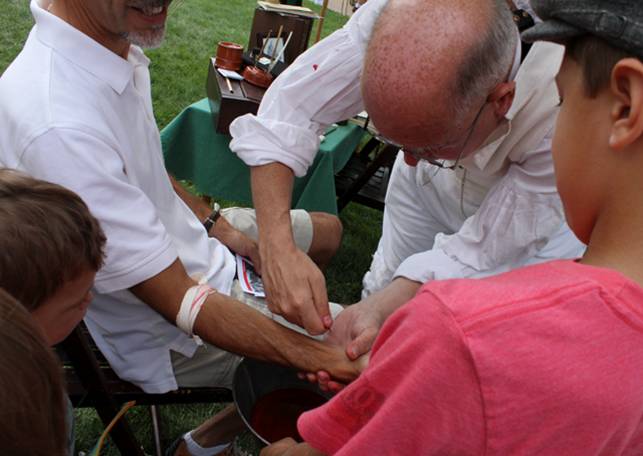 We spent the most time in the surgeon’s tent. The presenter was so well informed and had a large display of instruments, tinctures and other treatments that would have been used during the War of 1812.