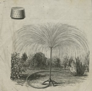 Keeping a lawn lush and green in the hot summer months could be accomplished with a range of sprinkling devices. Sprinklers were very popular when they first became common in the late 1800s. Of course, only people living in cities and towns that had water systems could use these “lawn fountains,” since they required constant water pressure to operate. By the 1930s, lawn sprinklers came in a variety of imaginative shapes. The iron figures helped to anchor the device, while being amusing as well as decorative.