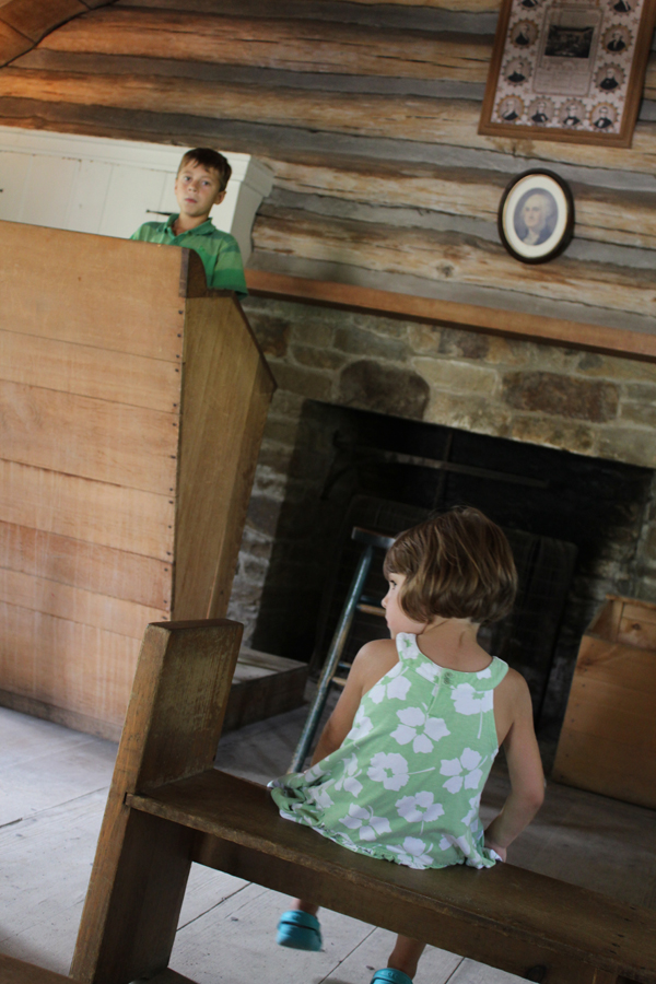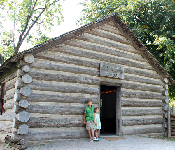 We spent some time inside the McGuffey Schoolhouse, erected in 1934 by Henry Ford to honor William Holmes McGuffey. It’s built from logs taken from the Pennsylvania farm at which McGuffey was born in 1800. The McGuffey Eclectic Reader series of texts were commonly used in schoolhouses across the United States. Our nine-year-old Henry eagerly stood at the teacher’s podium and began to lecture his five-year-old sister on the Civil War. I attempted to explain to him that the Civil War hadn’t even occurred at the time the readers were written. Chronology wasn’t going to slow him down.