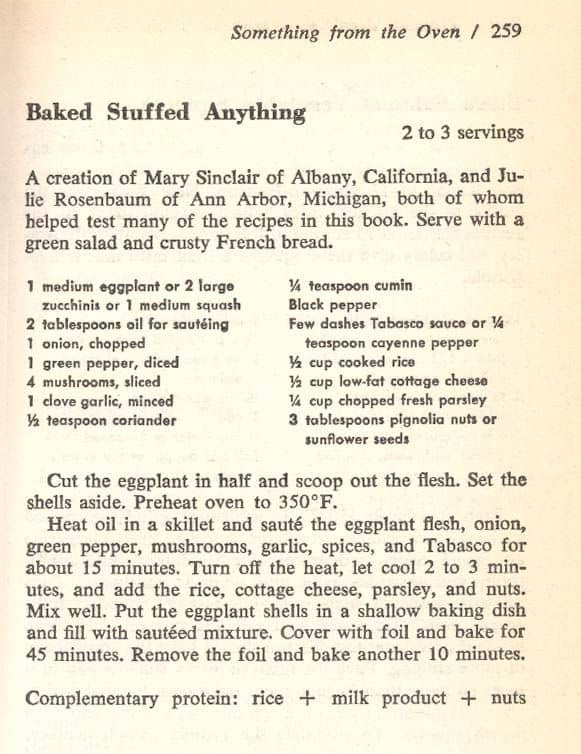 Hippie lifestyles of the 1960s encouraged Americans to think vegetarian in the late 20th century. This cookbook, first published in 1971, gave tips for cooking with non-meat protein-rich foods like grains, beans and peanuts instead of meat.